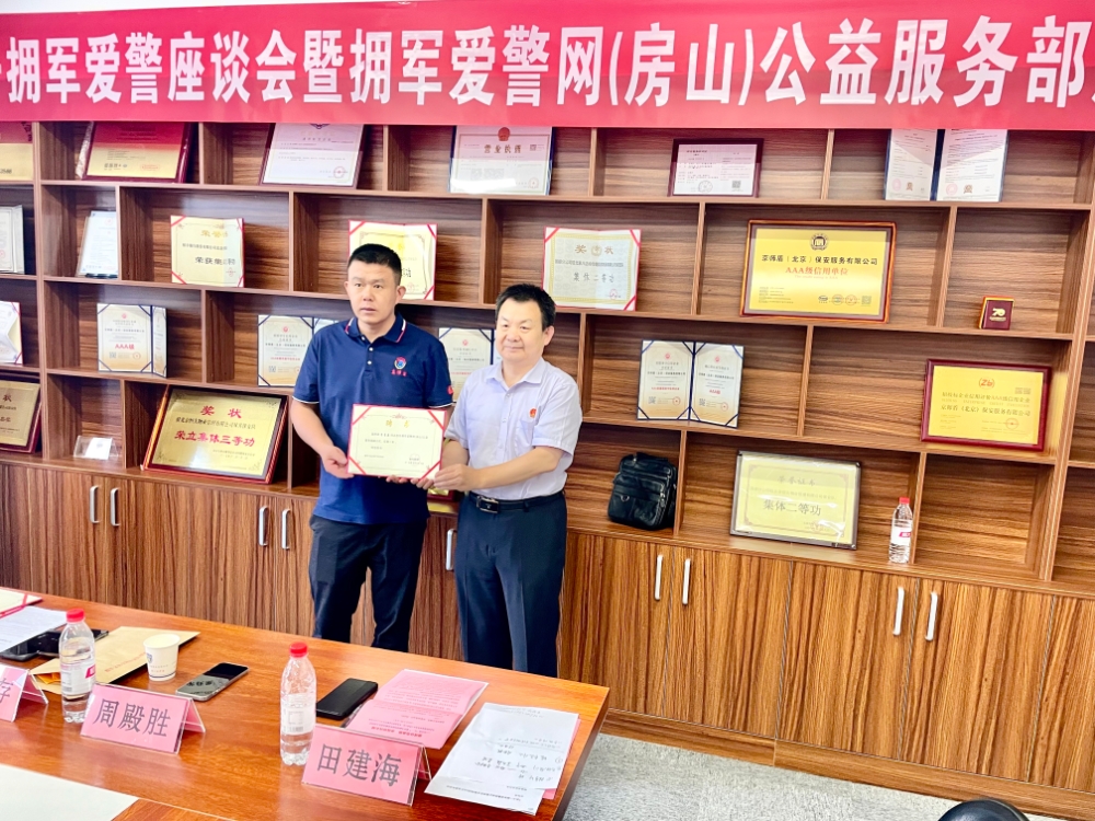 华夏国际融媒体联席会采编中心 北京讯(首席记者 田建海 记者 田梦 袁芳 何欣)赓续红色血脉,共筑时代长城。2025年7月31日上午10点,一场意义非凡的“庆‘八·一’拥军爱警座谈会暨拥军爱警网(房山)公益服务部成立仪式”在位于北京市房山区良乡凯旋大街的京师盾(北京)保安服务公司二楼会议室隆重举行。此次会议,由中国退役军人就业创业服务促进会红色文旅专委会、拥军爱警网、华科院拥军爱警研究中心等联合主办,众多行业专家、拥军人士和企业代表齐聚一堂,共同见证这一重要时刻。