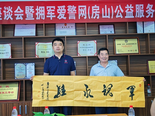 仪式最后,当代军旅书画家周殿胜、付后文为拥军爱警网(房山)公益服务部的成立,赠送了书法作品,也为活动增添了浓厚的文化氛围。此次拥军爱警网(房山)公益服务部的成立,标志着拥军爱警工作在房山地区迈出了坚实的一步,人们相信在各方的共同努力下,房山的拥军爱警事业将取得更加丰硕的成果。